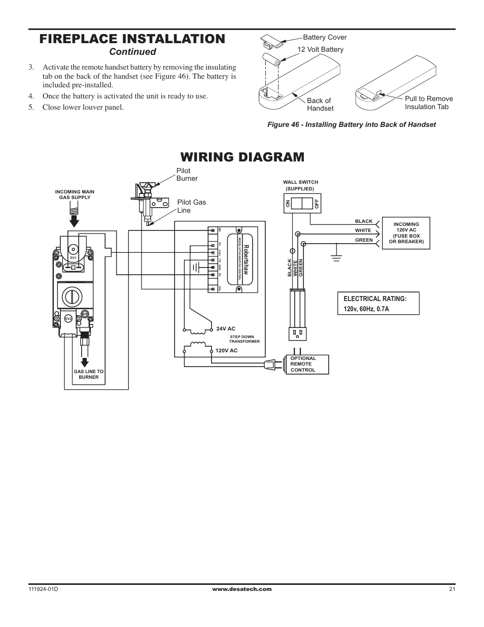 Wiring Diagram Fireplace Installation Continued Desa V K36en Series User Manual Page 21 34 Original Mode